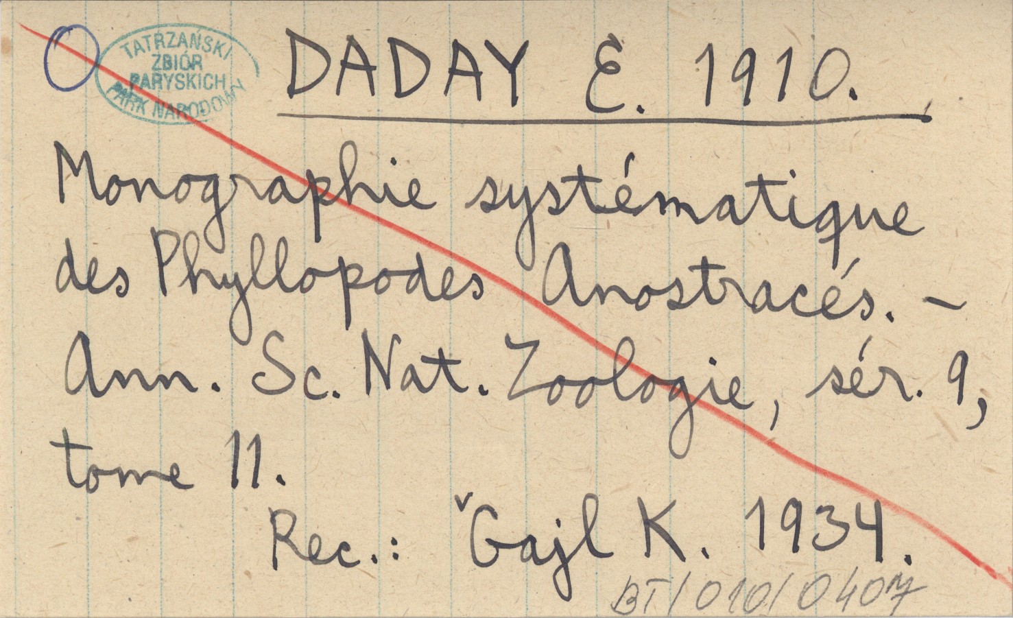 DADAY E. 1910 Monographie systématique des Phyllopodes Anostracés.