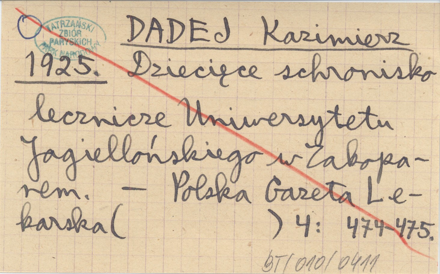 DADEJ Kazimierz 1925 Dziecięce schronisko lecznicze Uniwersytetu Jagiellońskiego w Zakopanem.