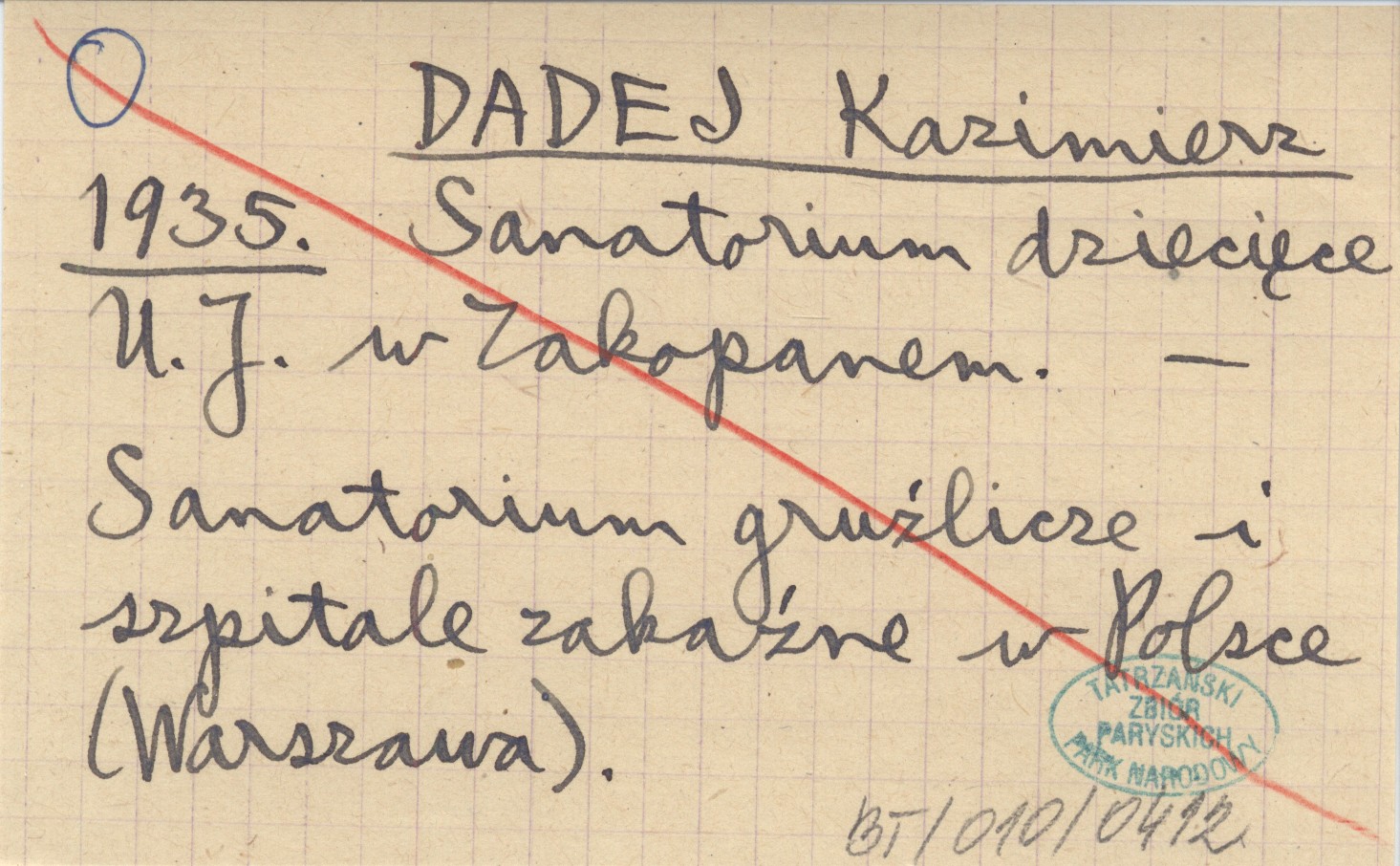 DADEJ Kazimierz 1935 Sanatorium dziecięce U.J. w Zakopanem.