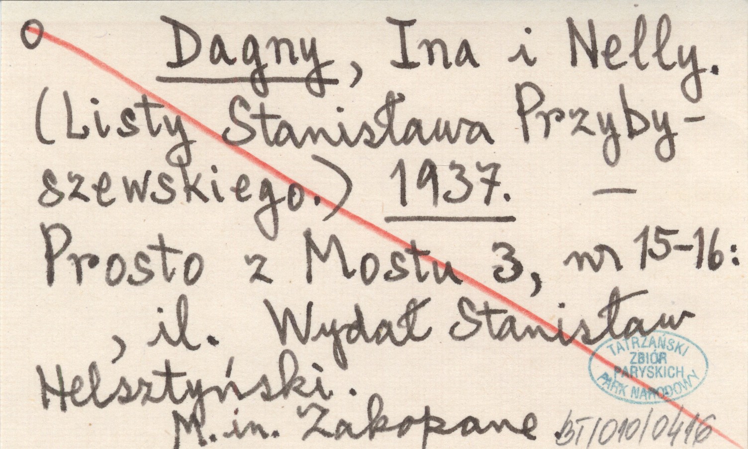 Dagny, Ina i Nelly. (Listy Stanisława Przybyszewskiego). 1937
