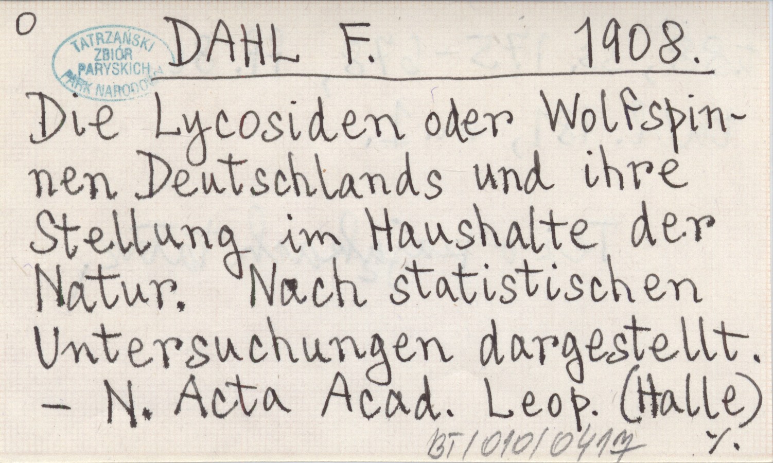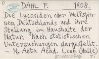 DAHL F. 1908 Die Lycosiden oder Wolfspinnen Deutschlands und ihre Stellung im Haushalte der Natur. Nach statistischen Untersuchungen dargestellt.