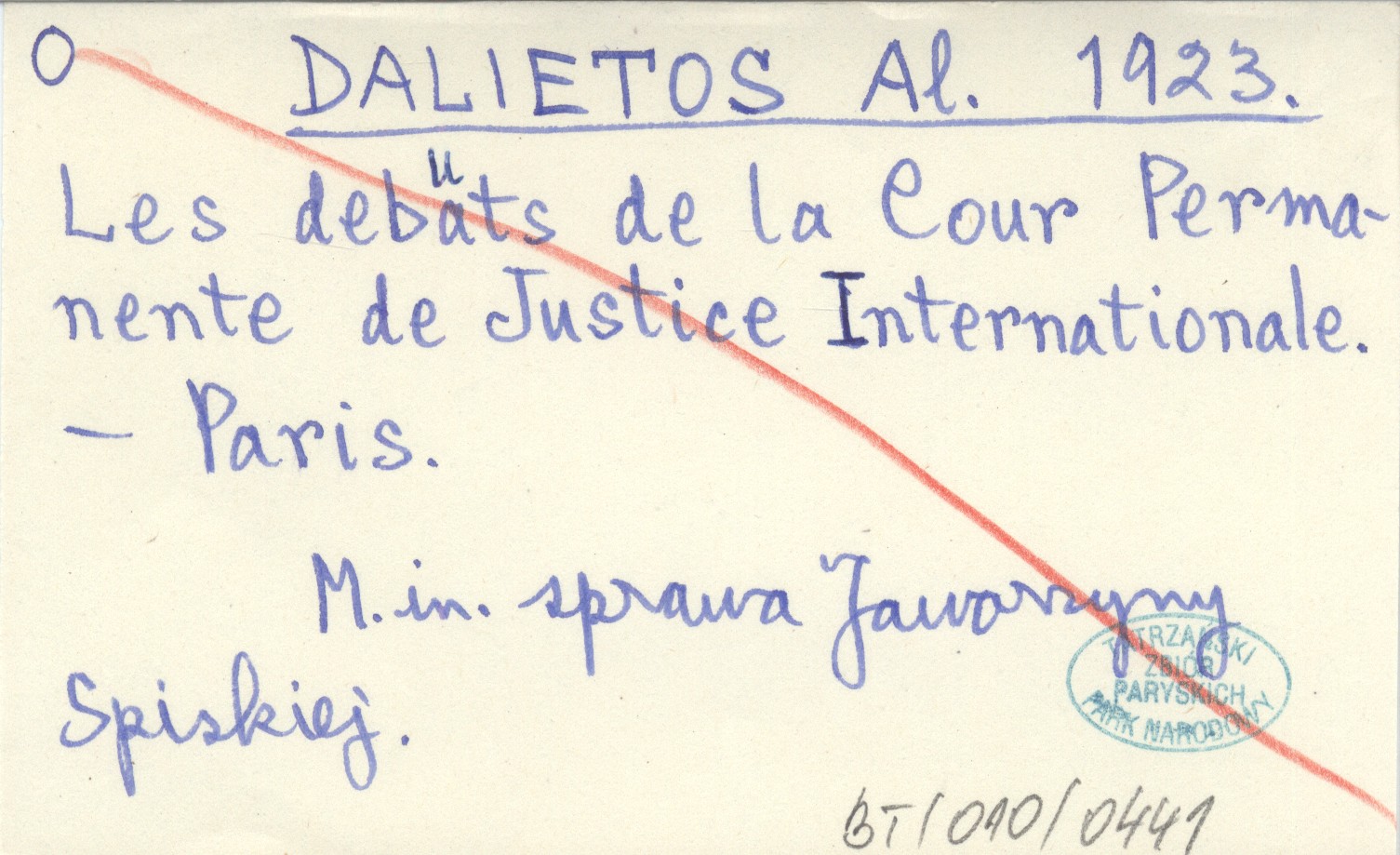 DALIETOS Al. 1923 Les deba(u)ts de la Cour Permanente de Justice Internationale.
