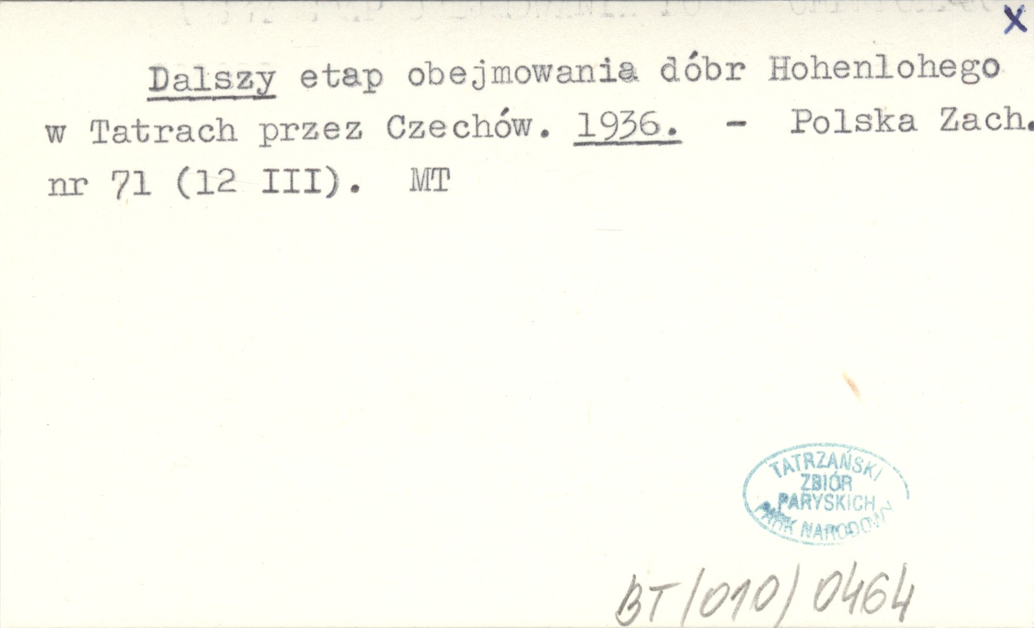 Dalszy etap obejmowania dóbr Hohenlohego w Tatrach przez Czechów. 1936