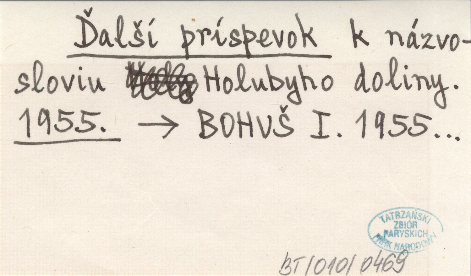 Ďalší príspevok k názvosloviu Holubyho doliny. 1955