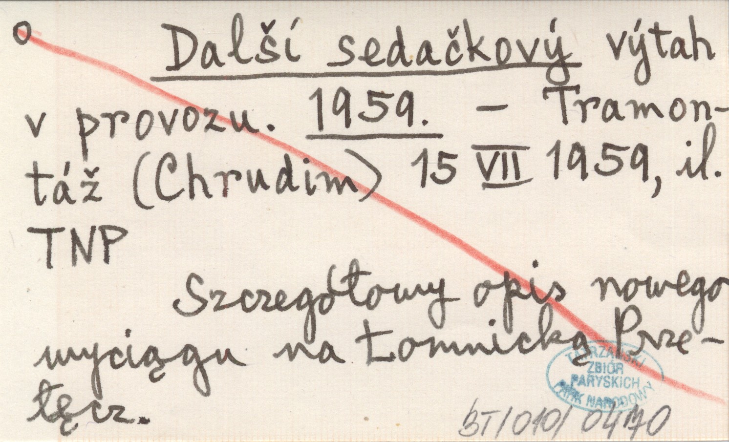 Tramontáž (Chrudim) , 15 VII 1959, il. Szczegółowy opis nowego wyciągu na Łomnicką Przełęcz.