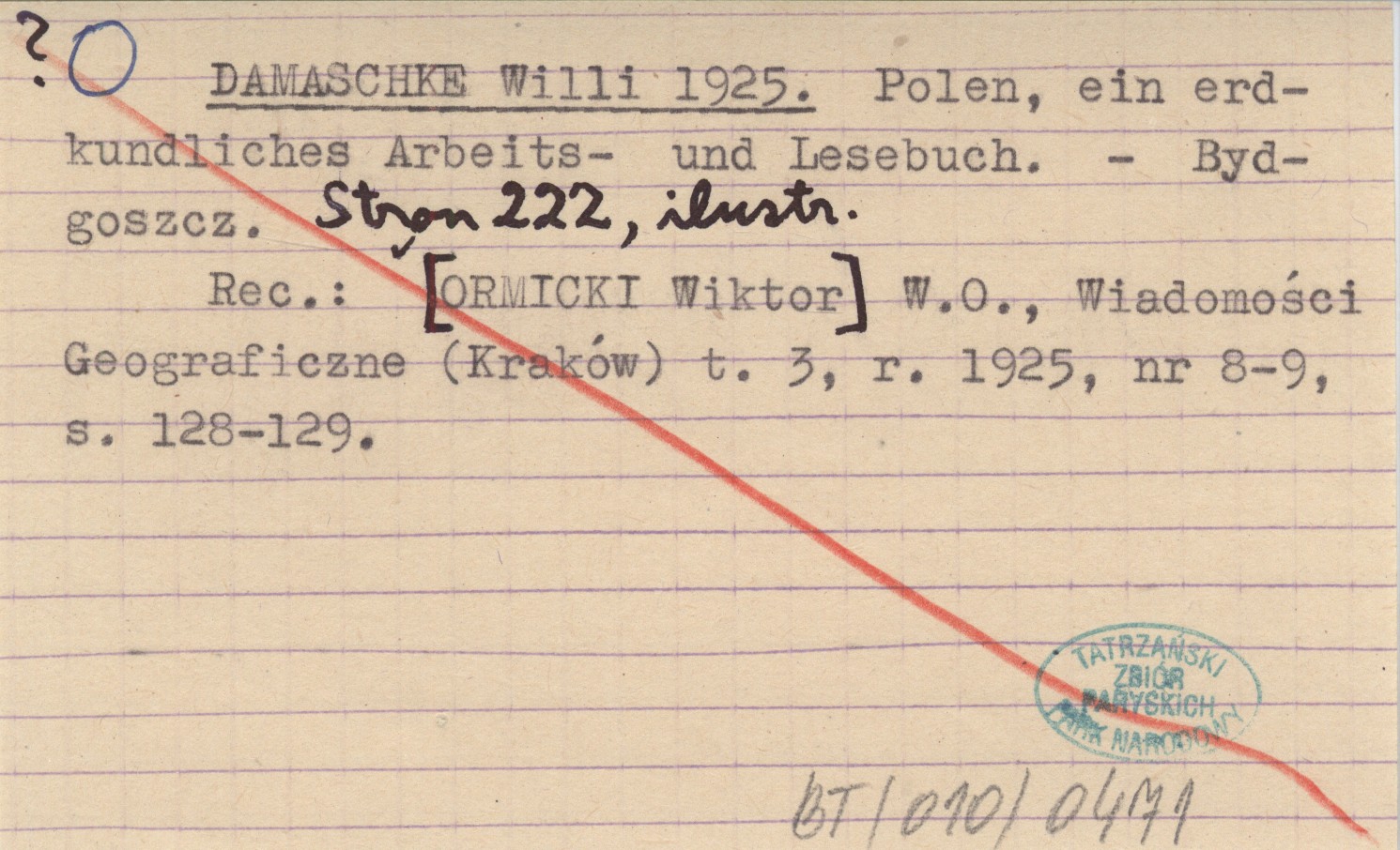 Bydgoszcz , 222 s., il. REC: [ORMICKI Wiktor] W.O., Wiadomości Geograficzne (Kraków) t. 3, r. 1925, nr 8-9, s. 128-129.