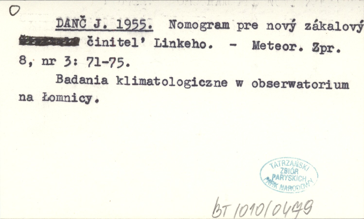 DANČ J. 1955 Nomogram pre nový zákalový činiteľ Linkeho.