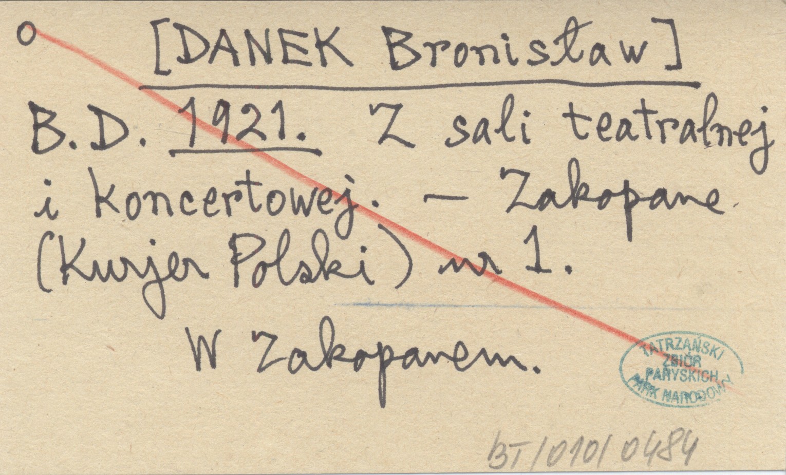 B. D. [DANEK Bronisław] 1921 Z sali teatralnej i koncertowej.