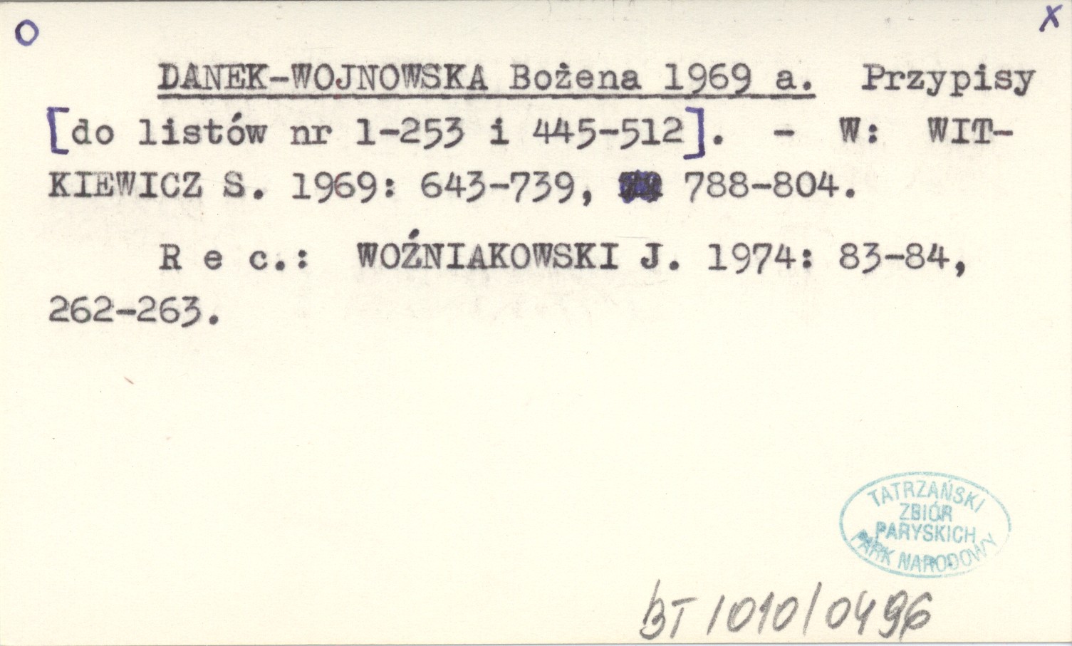 DANEK-WOJNOWSKA Bożena 1969 a Przypisy [do listów nr 1-253 i 445-512].
