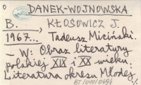 DANEK-WOJNOWSKA B. KŁOSOWICZ, J. ; 1967... Tadeusz Miciński.