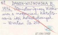 DANEK-WOJNOWSKA B. 1976 Stanisław Ignacy Witkiewicz a modernizm. Kształtowanie idei katastroficznych.