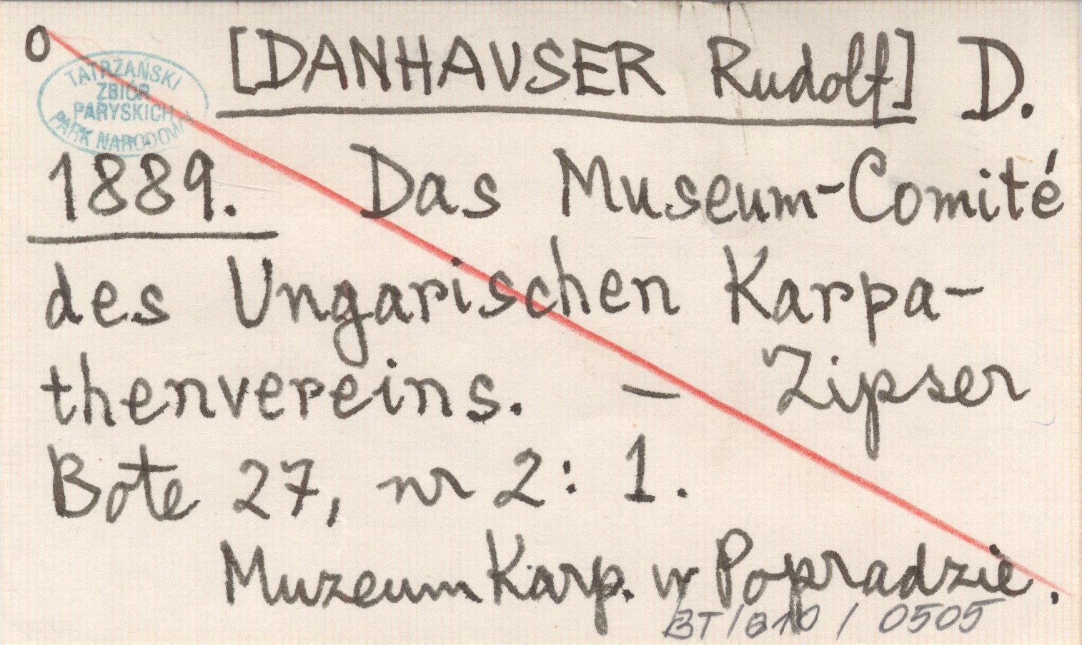 D. [DANHAUSER Rudolf] 1889 Das Museum-Comité des Ungarischen Karpathenvereins.