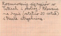 Zipser Bote, 27, nr 15: 2. Okaz rysia, darowany dla Muzeum Karpackiego w Popradzie. Rozmnożenie się rysiów w Tatrach i okolicy. Polowanie na rysie (ostatnio 20 sztuk) i trucie strychniną.