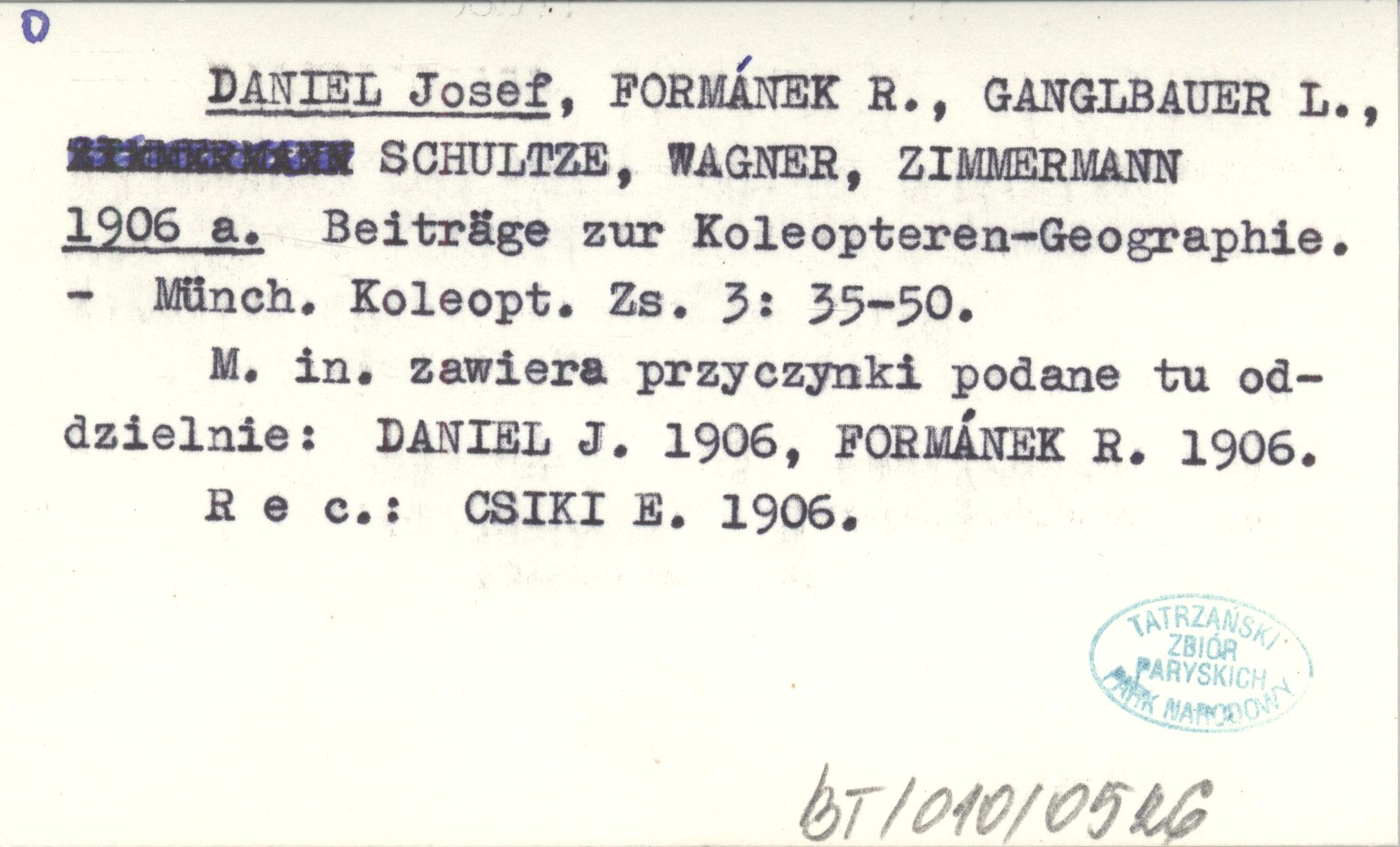 Münch. Koleopt. Zs., 3: 35-50. M. in. zawiera przyczynki podane tu oddzielnie: DANIEL J. 1906, FORMÁNEK R. 1906. REC: CSIKI E. 1906.