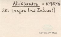 Aleksandra KYDRYŃSKI Lucjan [nie Juliusz!]