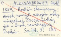 ALEKSANDROWICZ Adolf 1857 Rozbiór chemiczny dwóch nowych zdrojów wody mineralnej Szczawnickiej jod i brom zawierającej.
