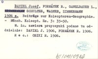 DANIEL Josef FORMÁNEK, R. ; GANGLBAUER, L. ; SCHULTZE. ; WAGNER. ; ZIMMERMANN. ; 1906 a Beiträge zur Koleopteren-Geographie.