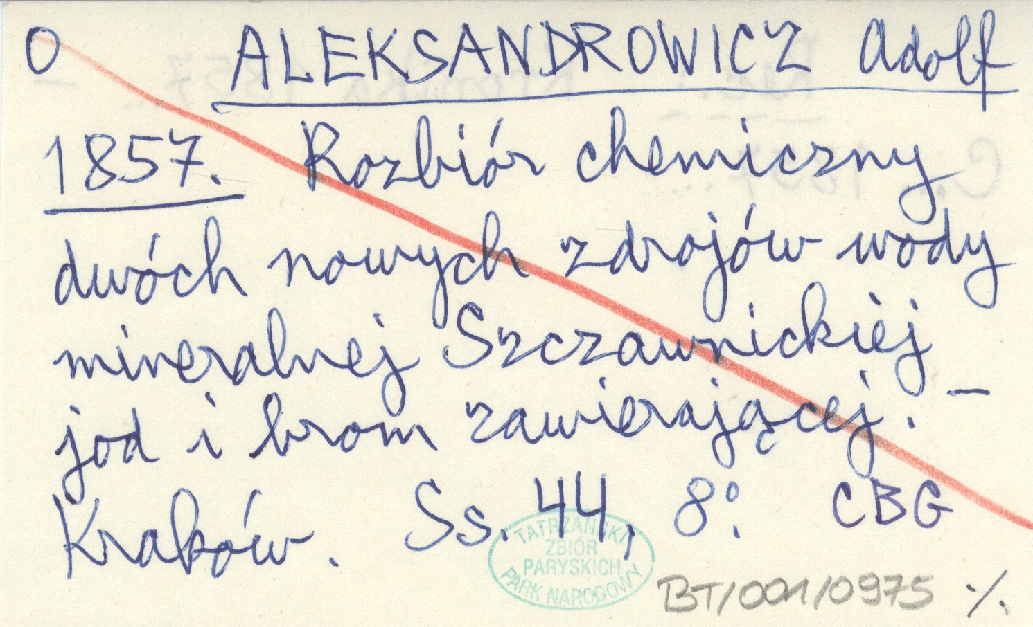 ALEKSANDROWICZ Adolf 1857 Rozbiór chemiczny dwóch nowych zdrojów wody mineralnej Szczawnickiej jod i brom zawierającej.