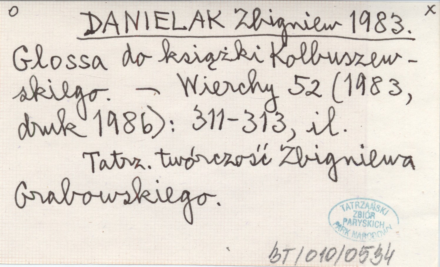 Projekt Digitalizacja fiszek z Bibliografią Tatr i Podtatrza Witolda Henryka Paryskiego jest finansowany ze środków Ministra Kultury i Dziedzictwa Narodowego oraz Tatrzańskiego Parku Narodowego.