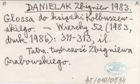 DANIELAK Zbigniew 1983 Glossa do książki Kolbuszewskiego.