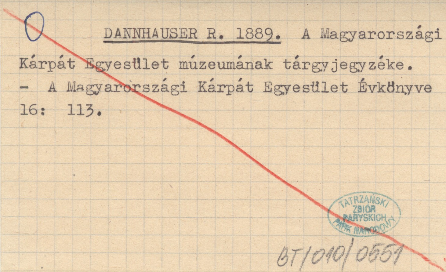 DANNHAUSER R. 1889 A Magyarországi Kárpát Egyesület múzeumának tárgyjegyzéke.