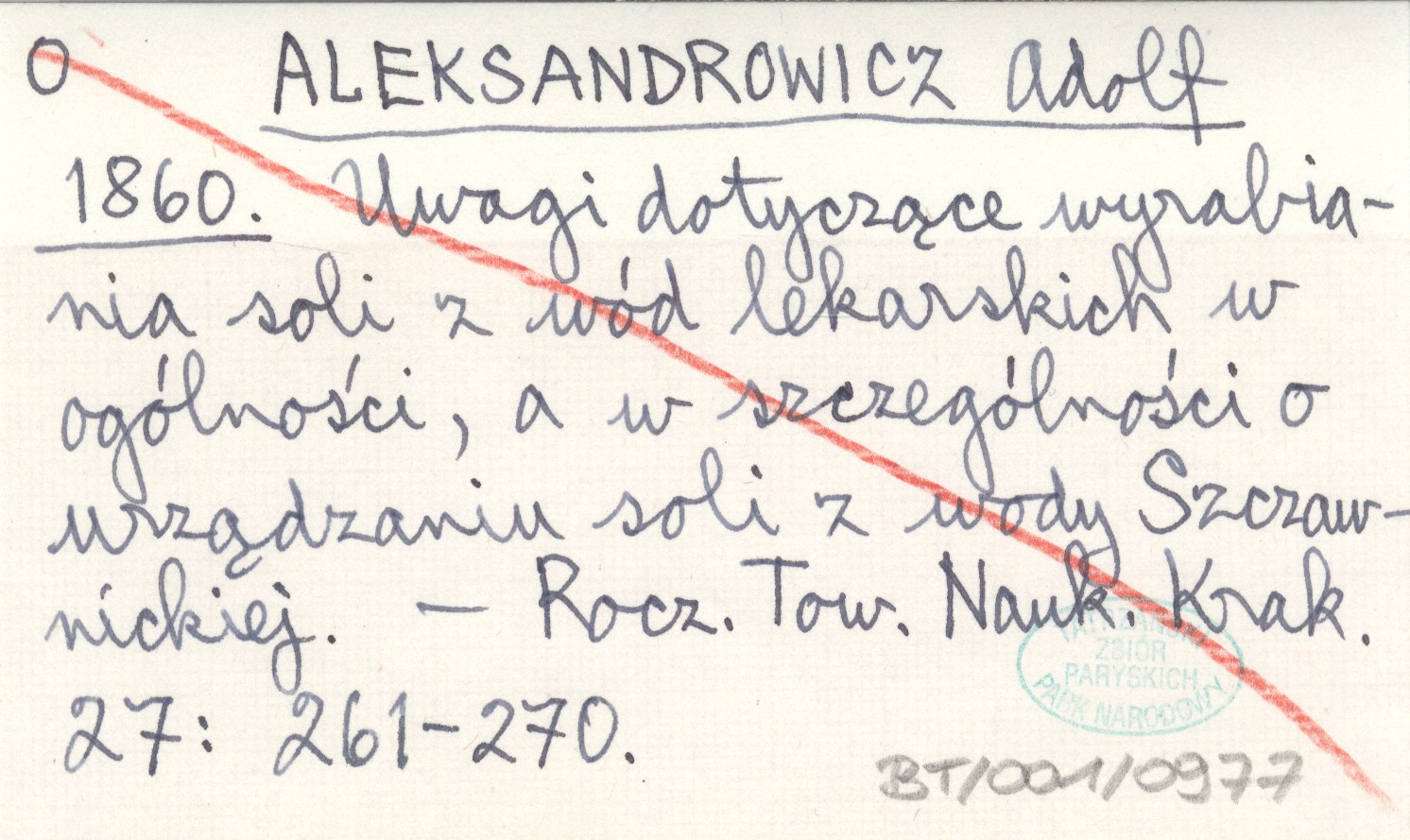 ALEKSANDROWICZ Adolf 1860 Uwagi dotyczące wyrabiania soli z wód lekarskich w ogólności, a w szczególności o urządzeniu soli z wody Szczawnickiej.