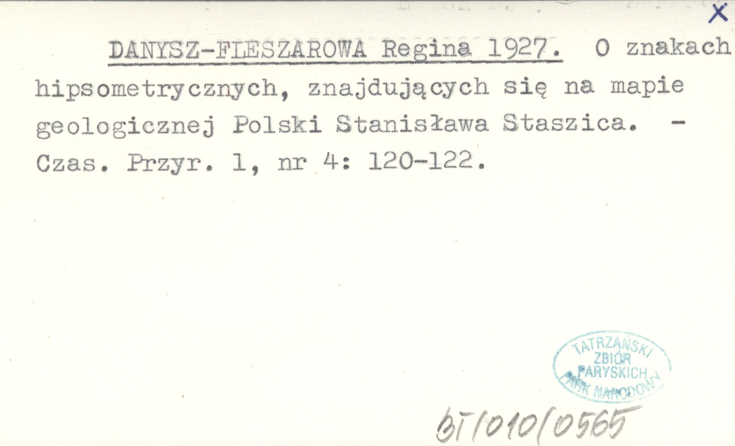 DANYSZ-FLESZAROWA Regina 1927 O znakach hipsometrycznych, znajdujących się na mapie geologicznej Polski Stanisława Staszica.