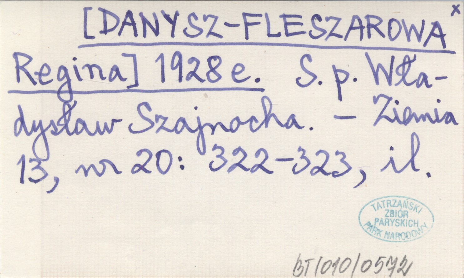 [DANYSZ-FLESZAROWA Regina] 1928 e S. p. Władysław Szajnocha.