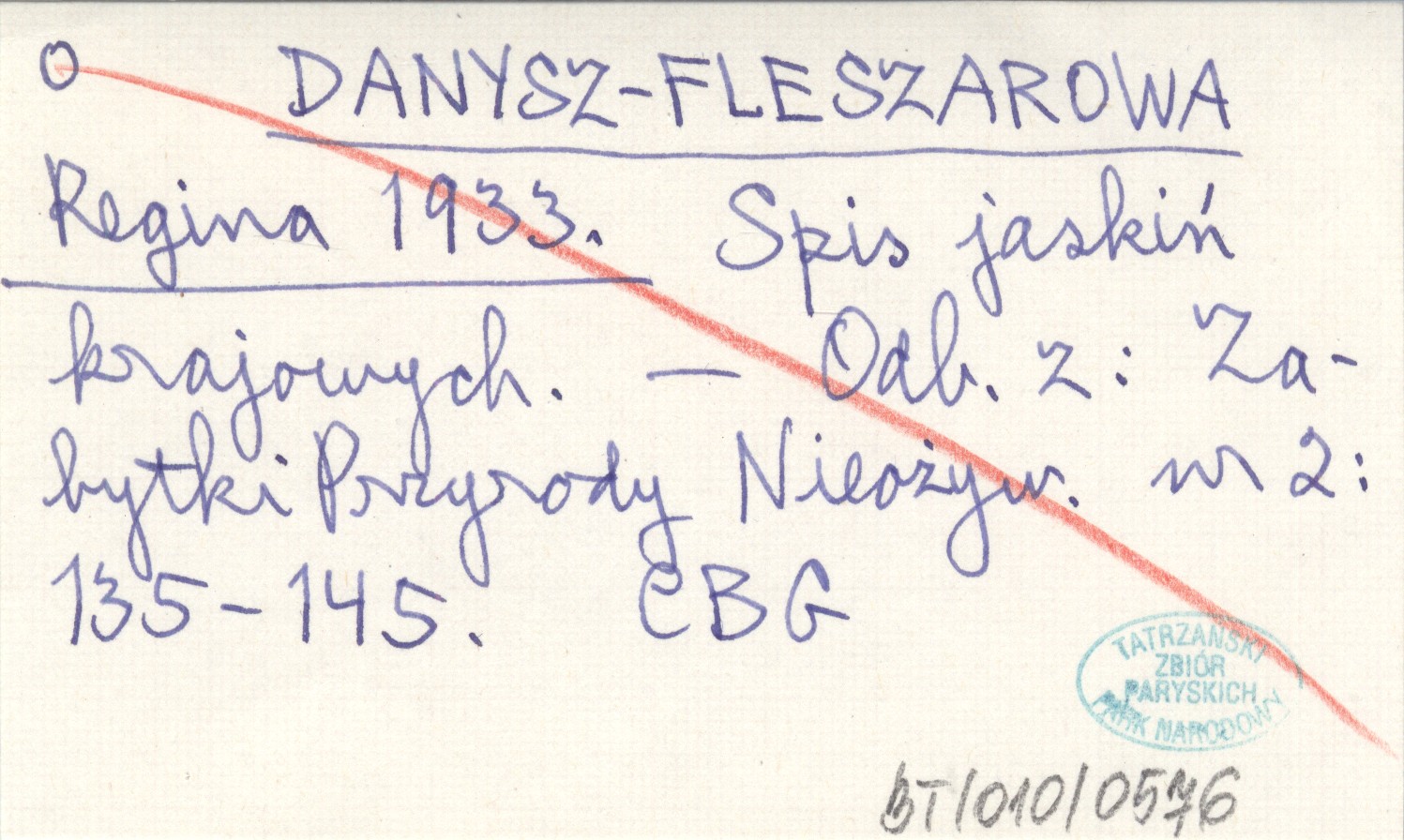 DANYSZ-FLESZAROWA Regina 1933 Spis jaskiń krajowych.