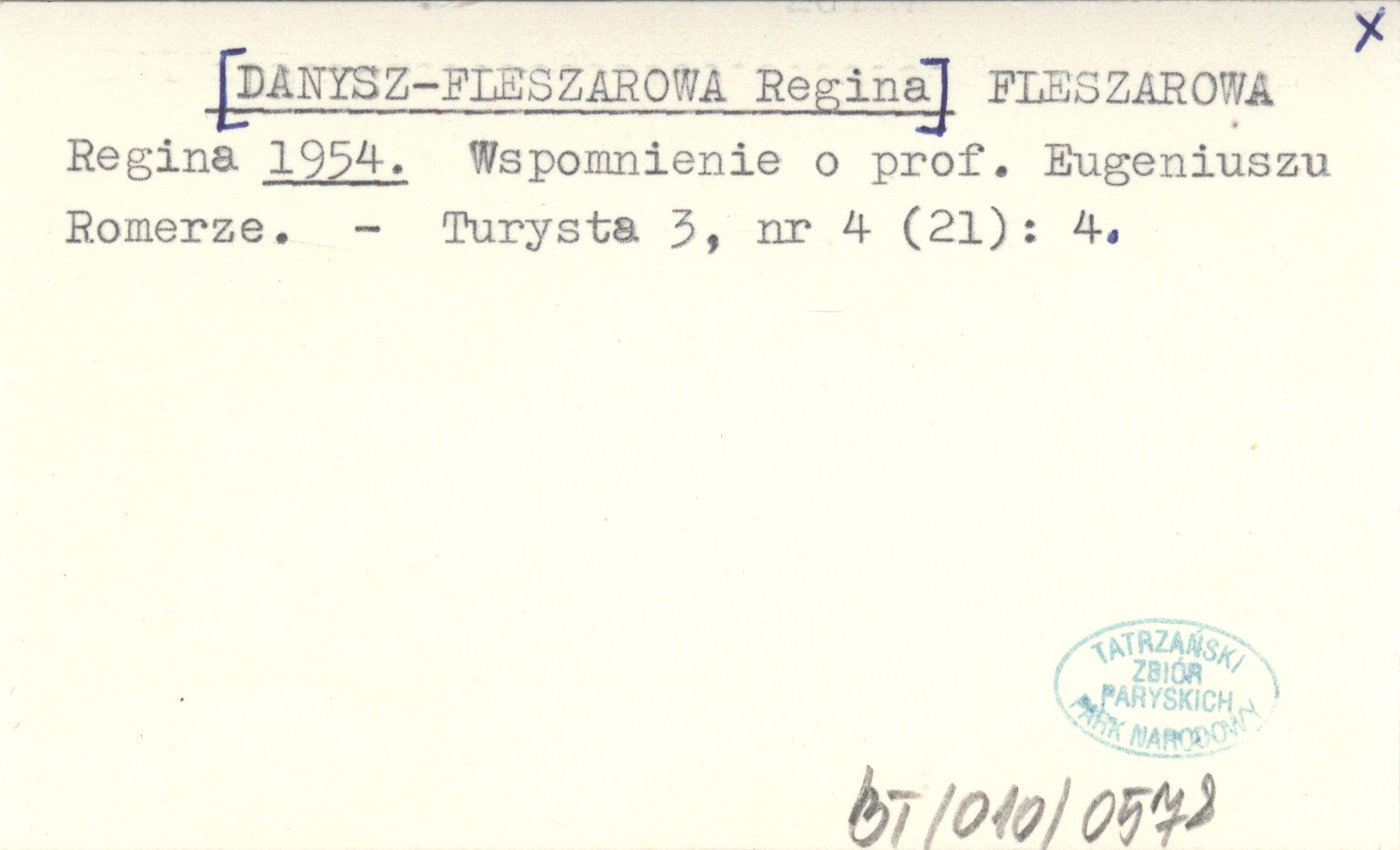 FLESZAROWA Regina [DANYSZ-FLESZAROWA Regina] 1954 Wspomnienie o prof. Eugeniuszu Romerze.