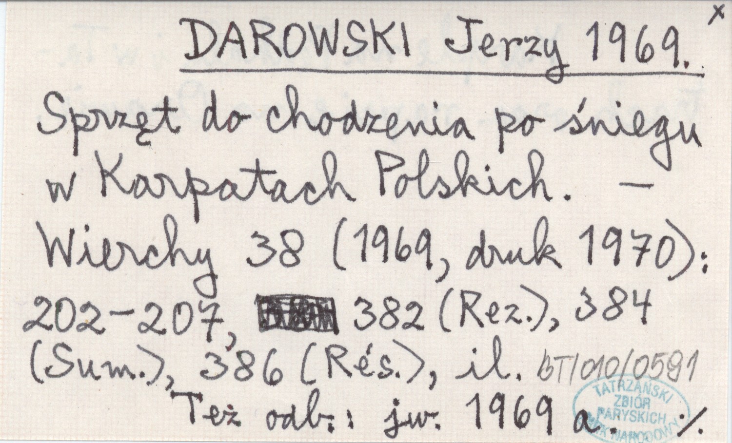 DAROWSKI Jerzy 1969 Sprzęt do chodzenia po śniegu w Karpatach Polskich.