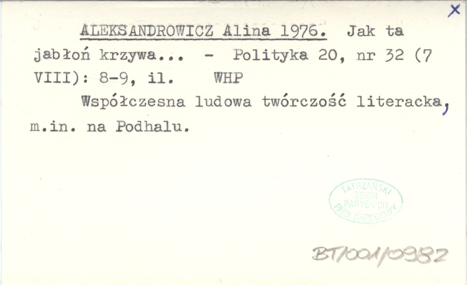 Polityka, 20, nr 32 (7 VIII): 8-9, il. Współczesna ludowa twórczość literacka, m. in. na Podhalu.