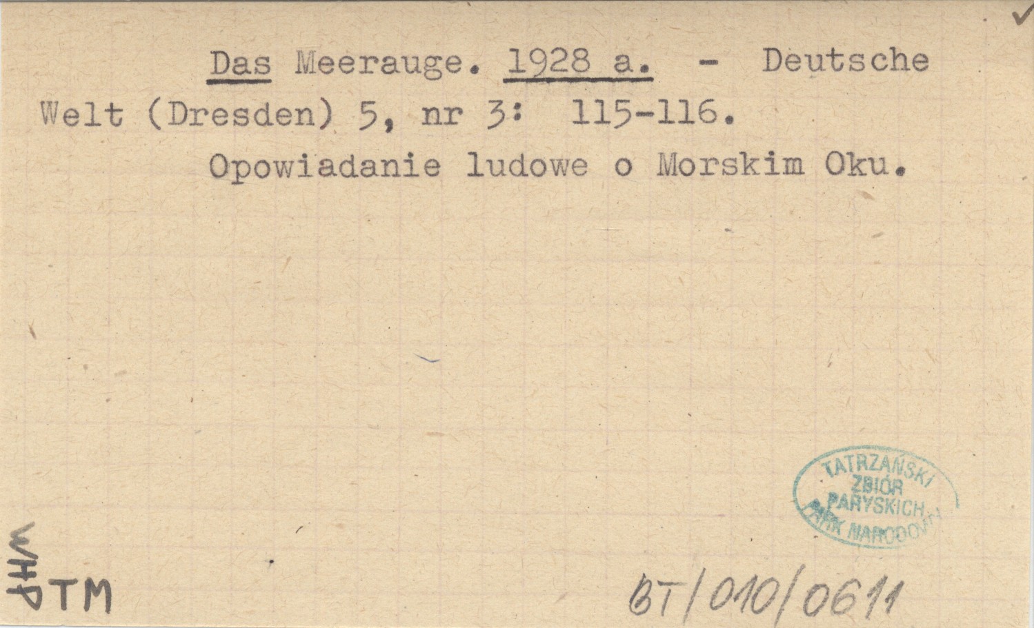 Deutsche Welt (Dresden) , 5, nr 3: 115-116. Opowiadanie ludowe o Morskim Oku.