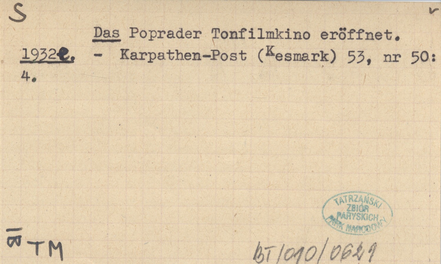 Poprader Tonfilmkino eröffnet.