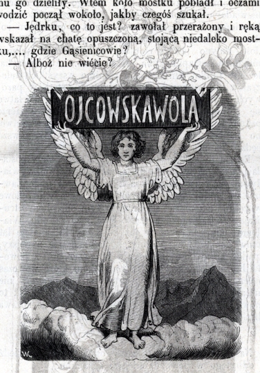 Ilustracja do tekstu Michała Bałuckiego "Ojcowska wola ustęp powieściowy w życia górali tatrzańskich" (Tygodnik Ilustrowany 1865, T. 11, Nr 298 z 10 czerwca 1865, s. 216-218).