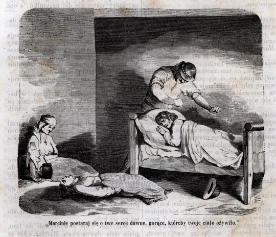 Ilustracja do tekstu "Kamienne serce" (tekst zamieszczony w całości - Kmiotek 1864, Nr 22 z 28 maja 1864, s. 174-176)
