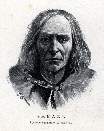Portret górala Jana Krzeptowskiego Sabały. Rycina sygnowana na odb. u dołu po lewej: S. W., powyżej: M. S.