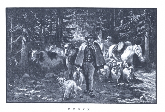 Wycinek. "Na Przełęczy" S. Witkiewicza ukazało się najpierw odcinkami w Tygodniku Ilustrowanym w latach 1889-1890 z 131 rycinami wg rysunków autora, a następnie w wydaniu książkowym (1891) z tymi samymi oraz pięcioma nowymi ilustracjami. Opisana rycina w wydaniu książkowym zamieszczona na s. 83.