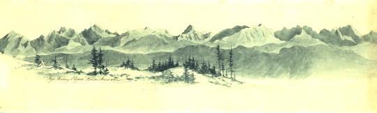 Reprodukcja panoramy publikowana [w:] Walery Eljasz Radzikowski, Ilustrowany Przewodnik do Tatr, Pienin i Szczawnic, wyd. 6, Kraków 1900, po s. 80 pt. "Wschodnie Tatry z Galicowej Grapy".