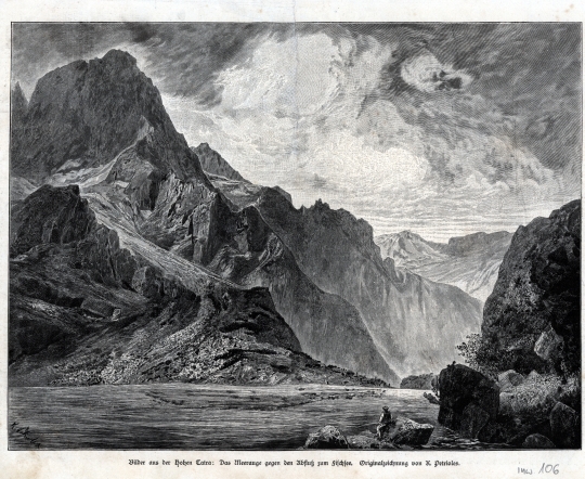 Jedna z trzech ilustracji o tematyce tatrzańskiej dołączona do tekstu Hugo Warmholza "Aus der Hohen Tatra". Illustrirte Zeitung, Nr 2870, s. 841-844.