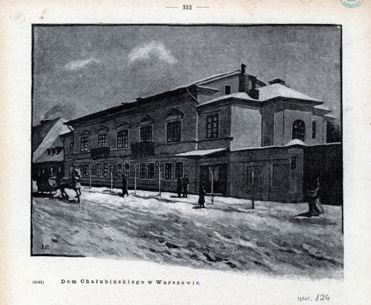 Rysunek piętrowego budynku w Warszawie, przy ulicy Mokotowskiej 48, w którym w latach 1877-1887 mieszkał i przyjmował pacjentów dr. Tytus Chałubiński.