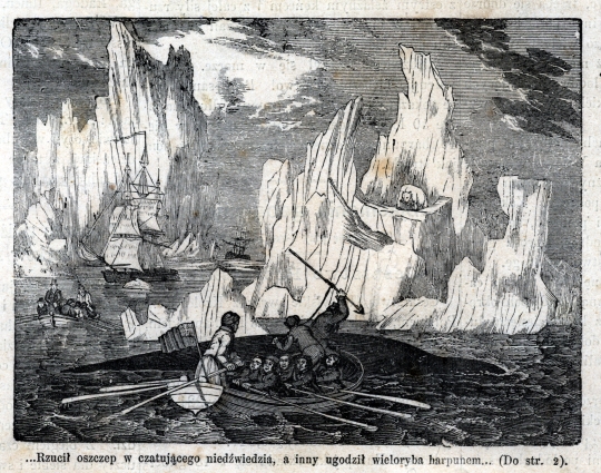 ...Rzucił oszczep w czatującego niedźwiedzia, a inny ugodził wieloryba harpunem...