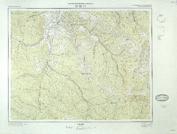 Mapa topograficzna, poziomicowa, Słowacji, arkusz obejmujący powiat Bardejov