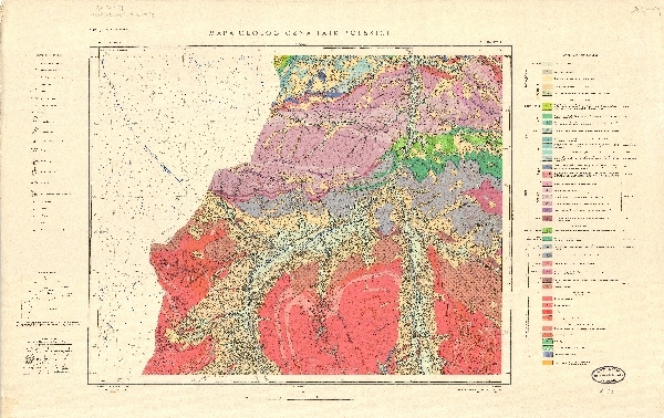 Szczegółowa mapa geologiczna, geomorfologiczna Tatr obejmująca litologię, tektonikę i stratygrafię, wykonana na podkładzie mapy topograficznej, obejmująca Tatry Zachodnie w rejonie Bobrowca. Zaznaczone poziomice i sieć hydrograficzna. Objaśnienia symboli oraz znaków.