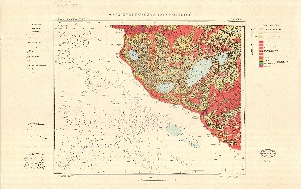 Szczegółowa mapa geologiczna, geomorfologiczna Tatr obejmująca litologię, stratygrafię i tektonikę, wykonana na podkładzie mapy topograficznej, obejmująca rejon Doliny Pięciu Stawów Polskich. Zaznaczone poziomice i sieć hydrograficzna. Objaśnienia symboli oraz znaków.