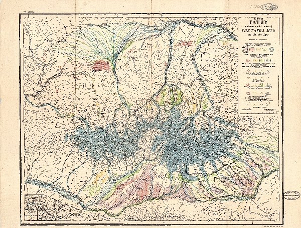 Mapa geomorfologiczna przedstawiająca zlodowacenie Tatr oraz formy polodowcowe na przedpolu. Podkład poziomicowy. Sieć rzeczna. Dodatkowo mapa Dolnego Liptowa i Przełomu Kralowańskiego w skali 1:200 000. Legenda.