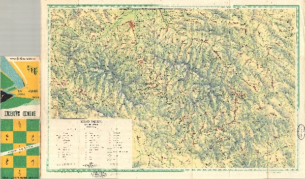 Mapa turystyczna obejmująca Beskid Sądecki. Rzeźba przedstawiona metodą poziomic i cieniowania i punktów wysokościowych. Sieć hydrograficzna. Zaznaczone obszary zalesione. Komunikacja - drogi i koleje. Osadnictwo. Zaznaczone szlaki turystyczne, szlaki narciarskie, obiekty turystyczne, zabytki, obiekty użyteczności publicznej. Legenda.
