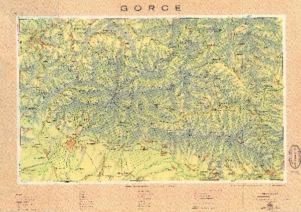 Mapa turystyczna obejmująca Gorce. Rzeźba przedstawiona metodą poziomic i cieniowania i punktów wysokościowych. Sieć hydrograficzna. Zaznaczono obszary zalesione. Komunikacja - drogi i koleje. Osadnictwo. Zaznaczone granice parku narodowego, szlaki turystyczne, szlak narciarski, obiekty turystyczne, zabytki, obiekty użyteczności publicznej.