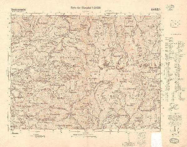 Mapa topograficzna obejmująca Niżne Tatry w okolicy Chabenca. Rzeźba przedstawiona metodą poziomic i punktów wysokościowych. W obszarze wysokogórskim rysunek skał. Topograficzne szczegóły rzeźby. Sieć hydrograficzna. Komunikacja - drogi. Osadnictwo. Zaznaczone granice administracyjne. Legenda w j. cz., niem.