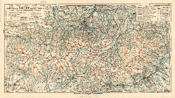 Mapa turystyczna obejmująca cały obszar Tatr i Zakopane. Mapa graniowa. Zaznaczone punkty wysokościowe. Sieć hydrograficzna. Komunikacja - drogi i koleje, koleje linowe. Osadnictwo. Zaznaczone szlaki i ścieki turystyczne oraz schroniska i jaskinie. Legenda.